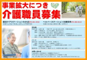 | ヘルパーステーション太秦安井 | 管理者 澤瀬美喜夫 | 075-283-0113 | 075-283-0116 | |